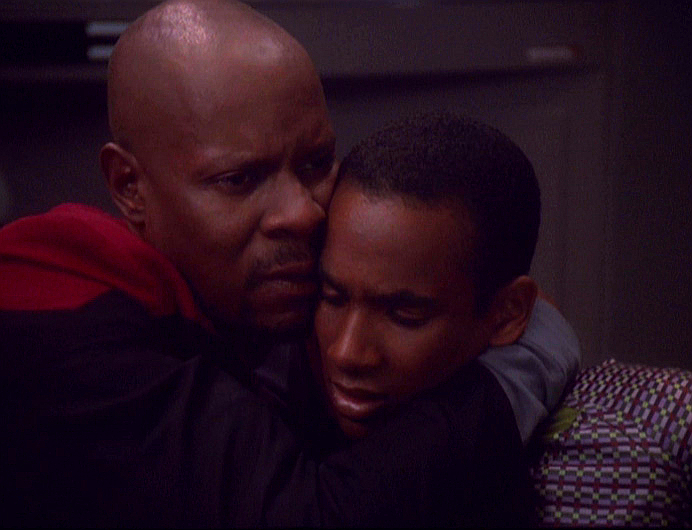 Alleinerziehender Vater: Captain Sisko (Avery Brooks, links) und sein Sohn Jake (Cirroc Lofton, rechts) in “The Visitor” (Szenenfoto: CBS).