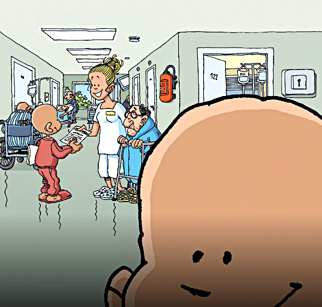 Wie das geht? Nun, während des Alltags von Glatzköpfchen, dem Hauptcharakter, besucht diese immer mal wieder andere Patienten, die meist in ihrem Alter sind. Und dabei erlebt sie eben die oben erwähnten Geschichten. So gibt es etwa einen Jungen, der “Fritte” heißt, weil er versucht hat, für seine Eltern Pommes zu machen. Aber auch andere Charaktere wie “90% Baumwolle“ tauchen auf. Dabei sieht man schon, dass die Protagonisten von Zita eigene Namen bekommen, die aber auch beim Leser gleich im Kopf hängen bleiben. Man merkt bereits an dieser Stelle, dass vor allem eines in diesen Comic geflossen ist: ganz viel Herzblut. Und wer sich davon und auch von den gut geschriebenen Charakteren nicht erweichen lässt, muss schon ein ganz harter Brocken sein.