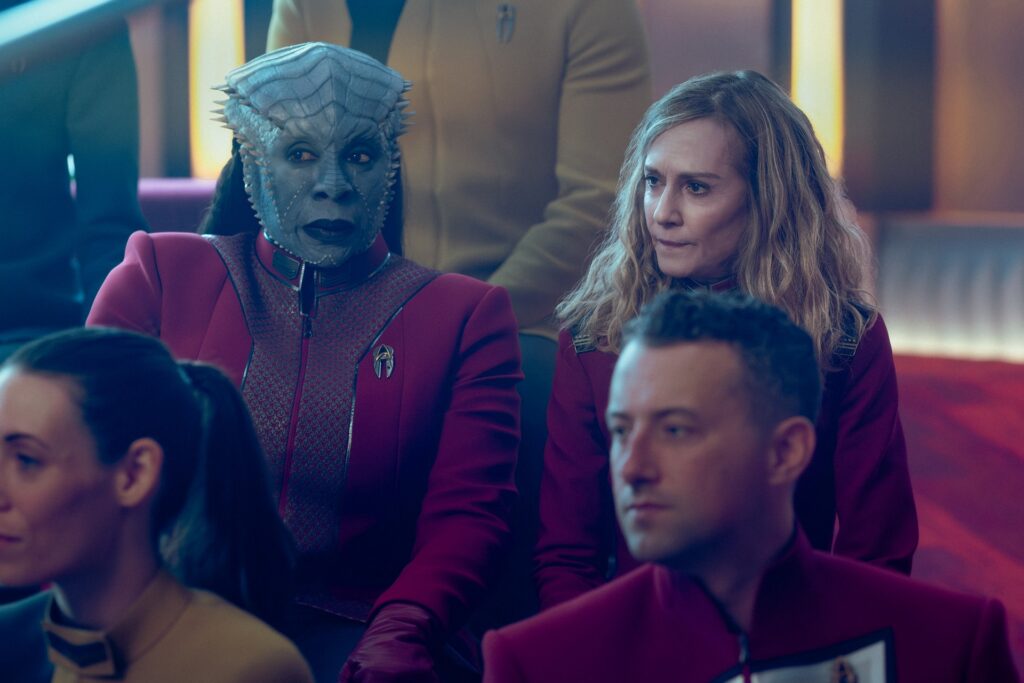 Natürlich könnte man an der Stelle einwenden, warum ausgerechnet Jay-Den die Lösung findet und alle darauf hören. Aber derartige Diskussionen sind viel zu mühselig, denn da könnt man bei jeder Trek-Serie fragen, warum gerade die Enterprise immer die Missionen ausführt, die die Galaxis verändern. Natürlich weil der Zuschauer eben hier bei unseren Helden ist, ganz klar.