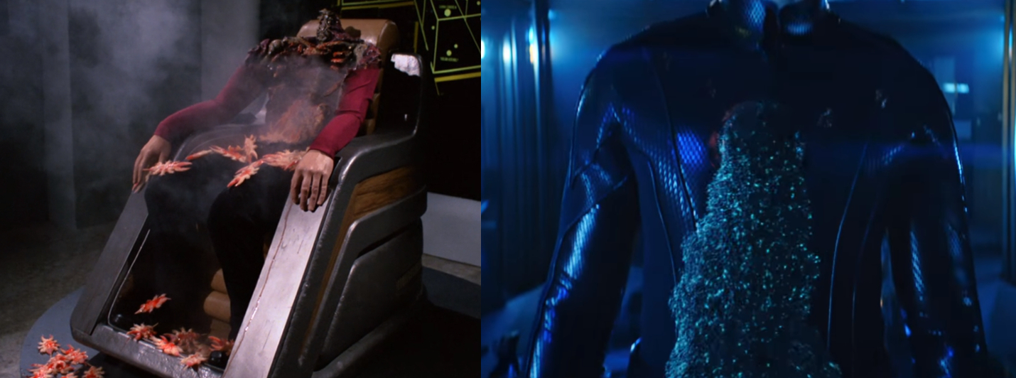 Cmdr. Remmick (links) in “Conspiracy” (TNG 1×25) und Kamran Gant (rechts) in “Through the Valley of Shadows” (Szenenfotos: CBS)