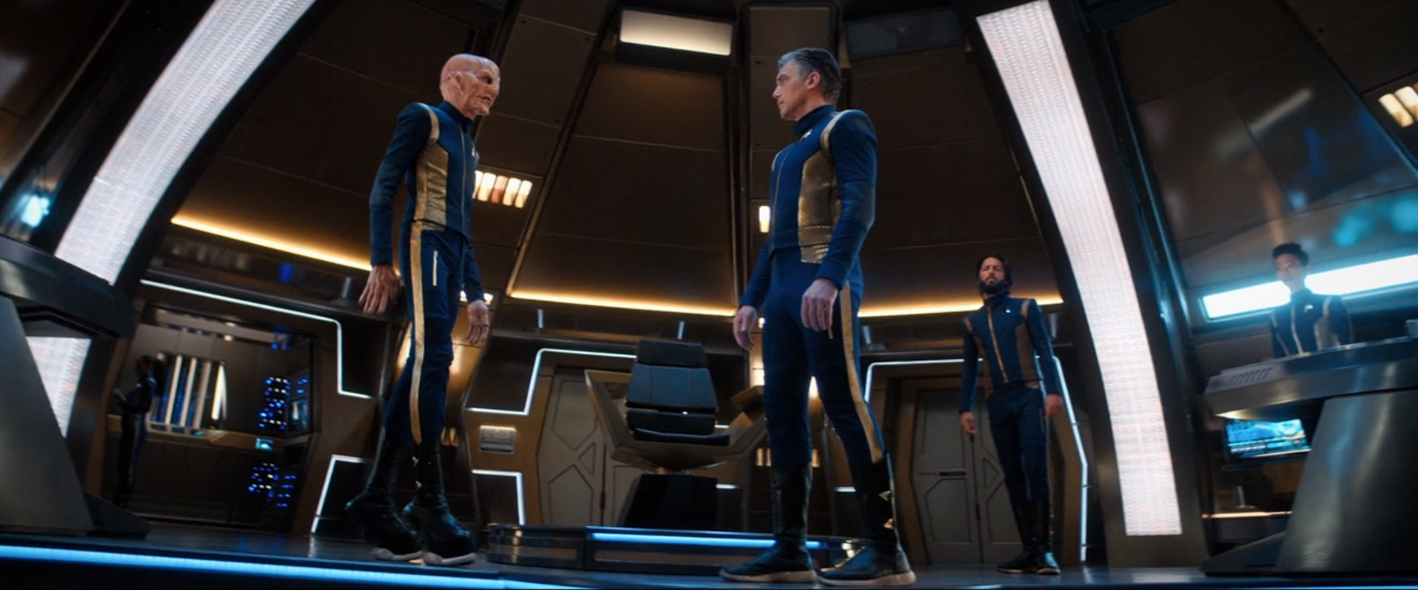 Commander Saru (Doug Jones) im Disput mit Captain Pike (Anson Mount) in “The Sounds of Thunder” (Szenenfoto: CBS)