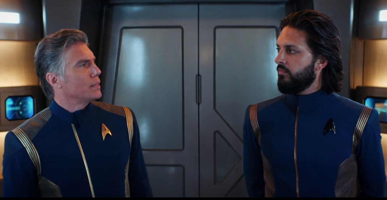 Captain Pike (Anson Mount) und Agent Tyler (Shazad Latif) in “Light and Shadows” (Szenenfoto: CBS)